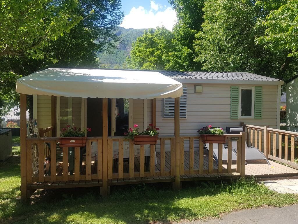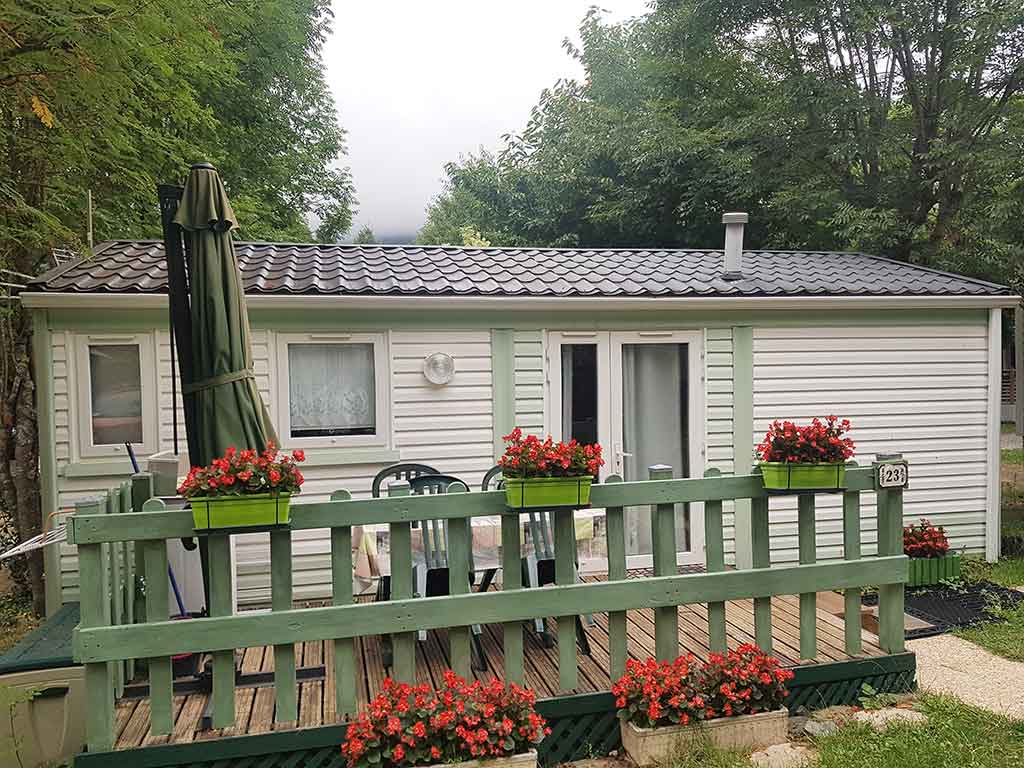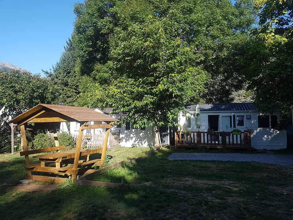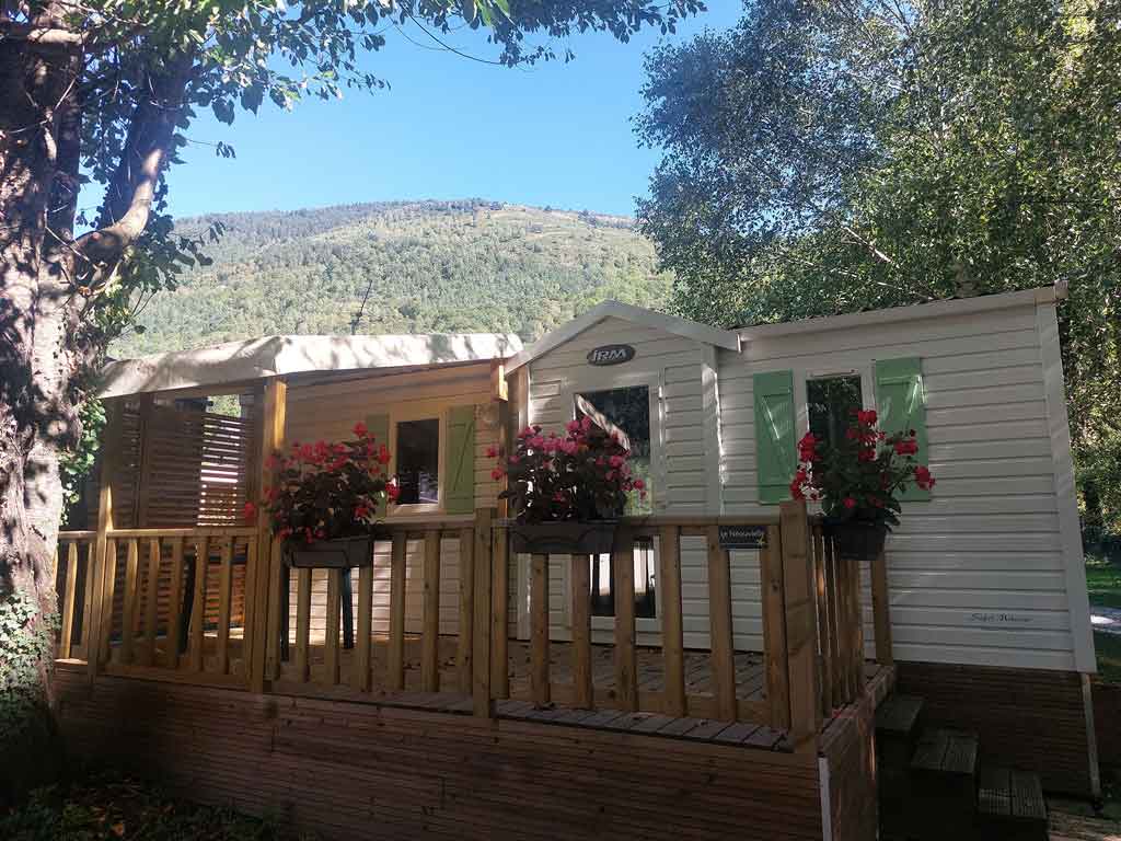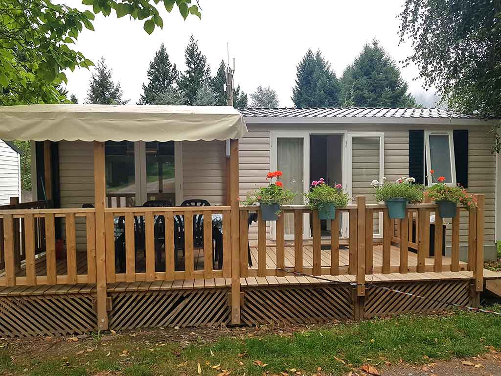Pour l'hiver, les mobil-homes sont entièrement isolés et chauffés, et disposent également d'un coffre à skis.