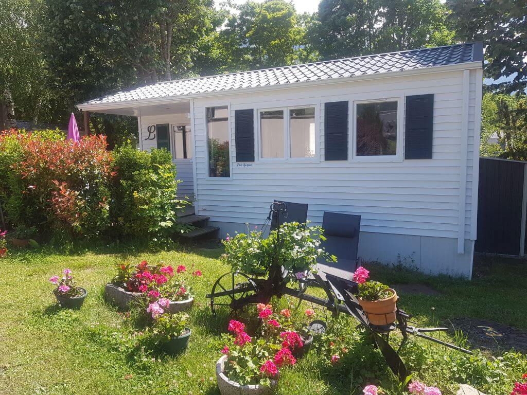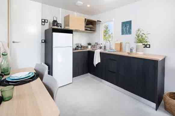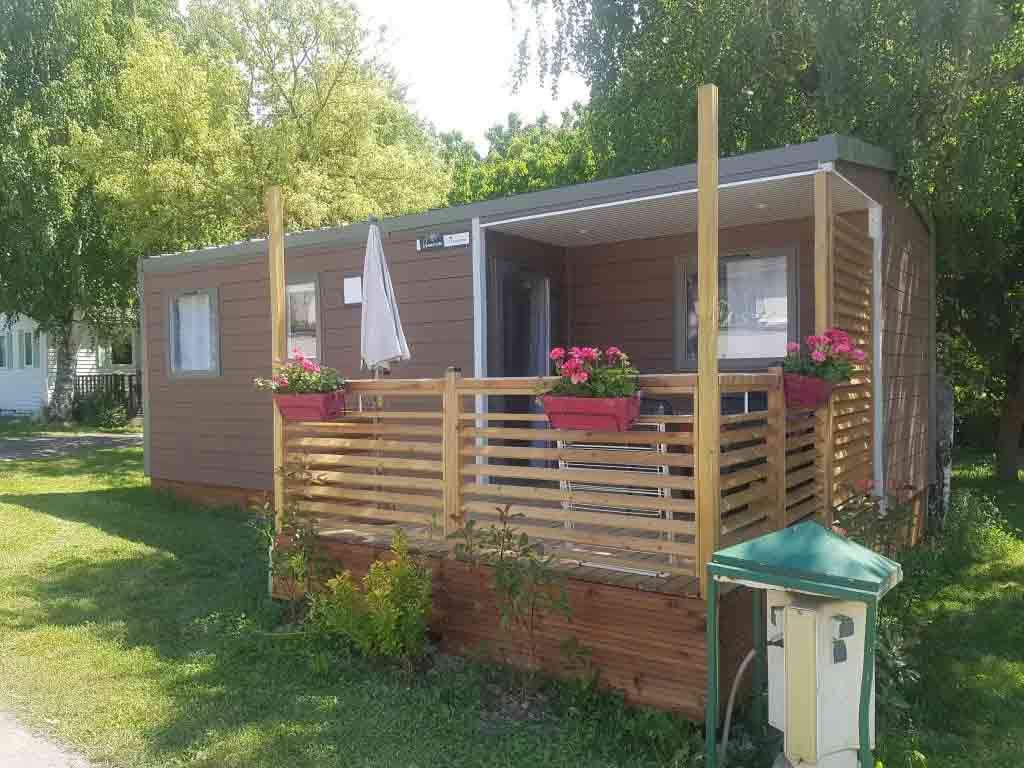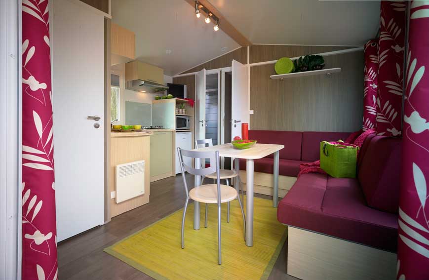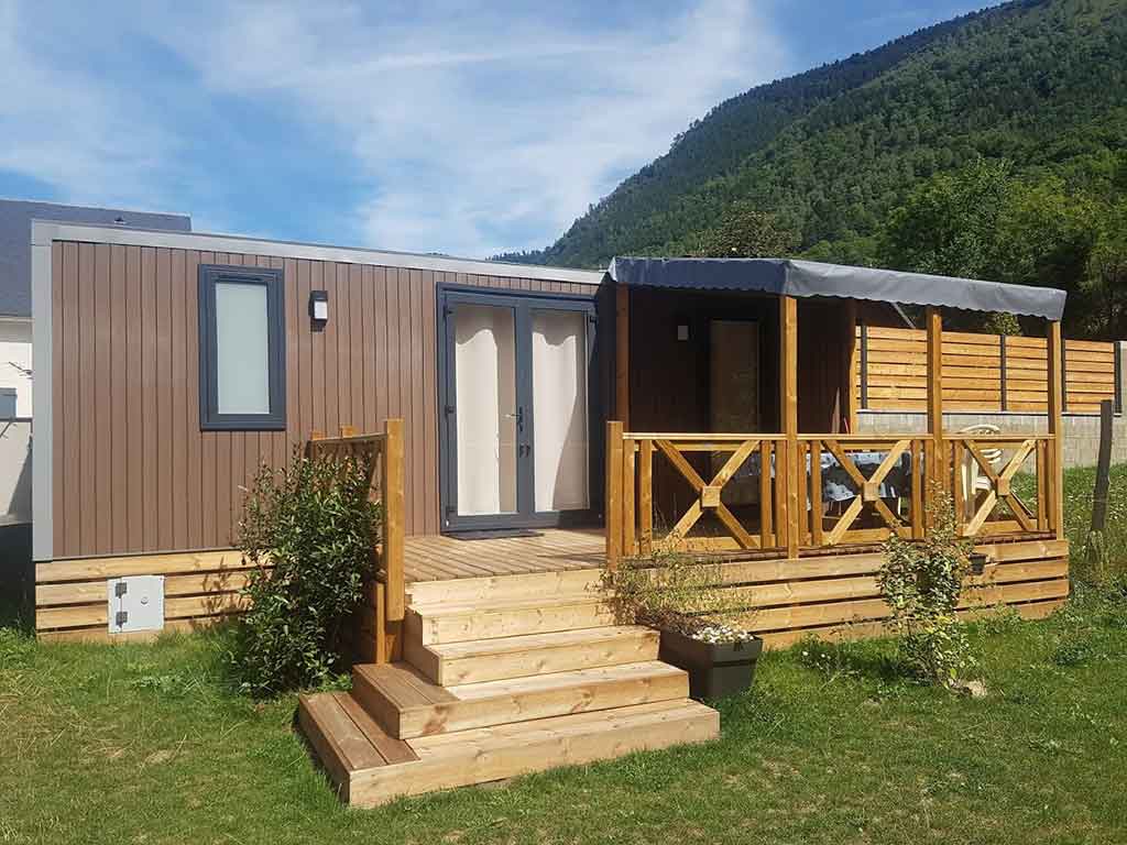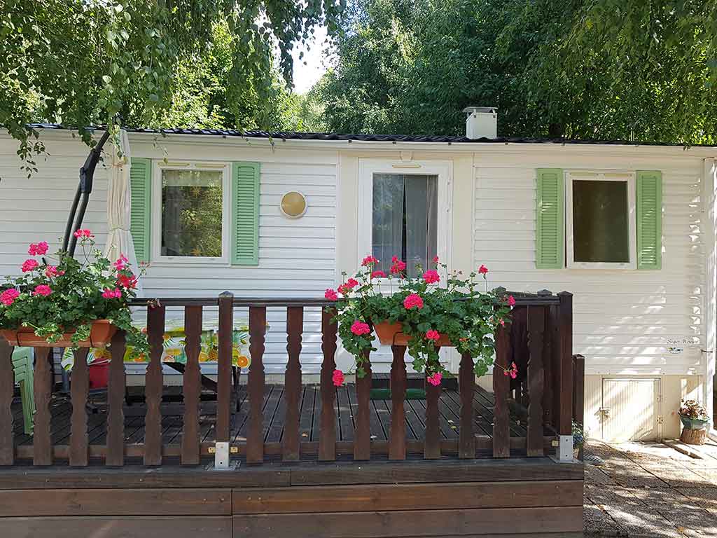 Pour l'hiver, les mobil-homes sont entièrement isolés et chauffés, et disposent également d'un coffre à skis.